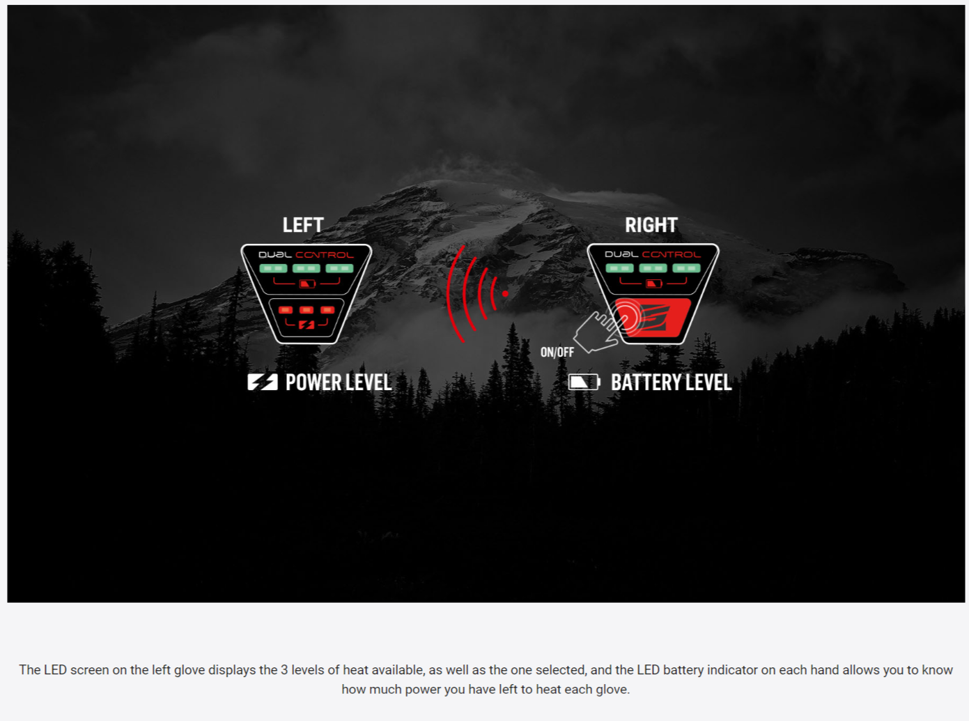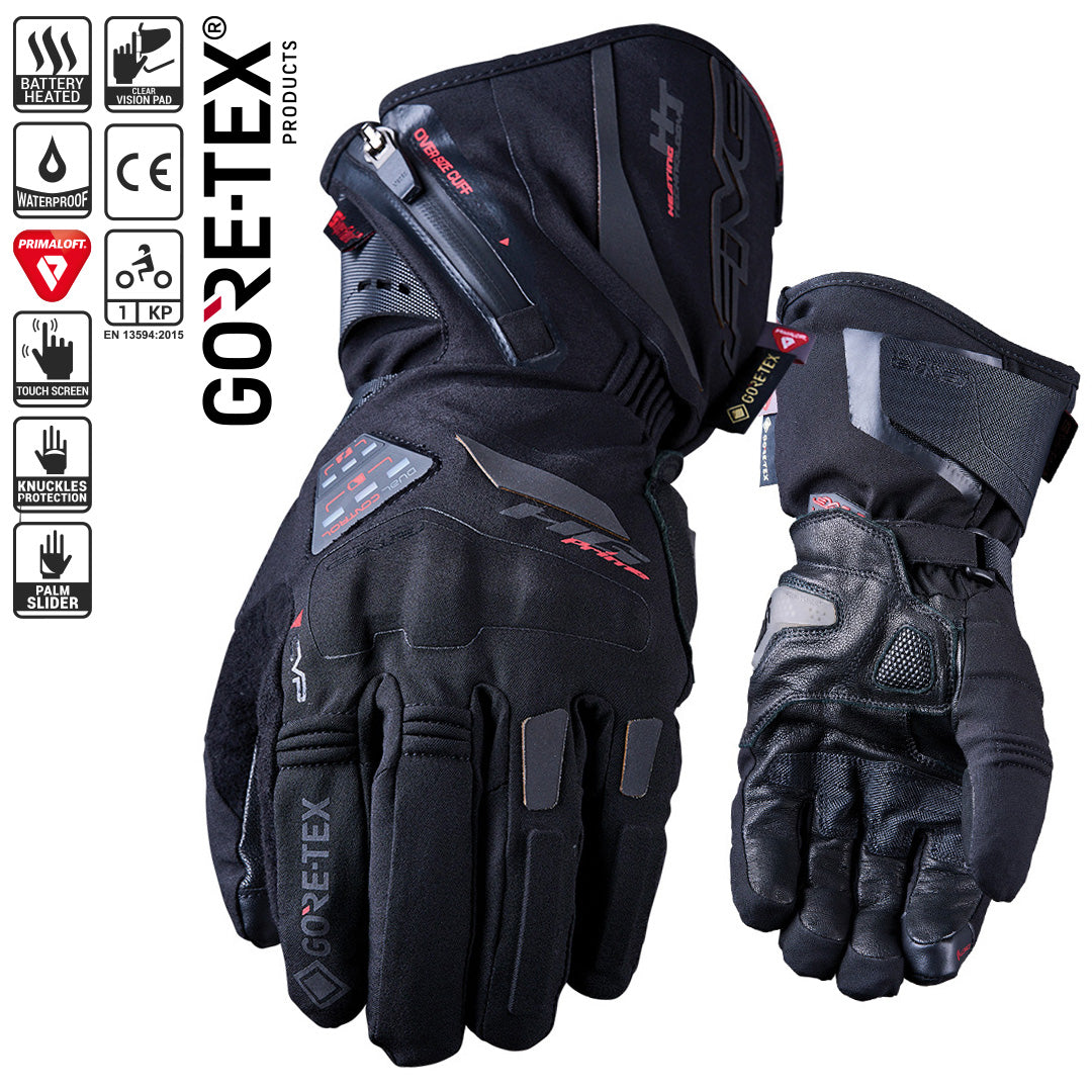 FIVE's HG PRIME GTX Heated motorcycle gloves use 1.3mm thick resistors strategically placed on the back of the hand and fingers. This construction offers uniform heat without compromising on palm sensitivity, and warms up the zones that are most exposed to the cold: the back of the hand and down to the fingertips. The Dual Control Heating system uses 3 independently controlled levels of heat: Eco, Regular, and Boost, either at 45°C, 50°C, or 60°C, to suit conditions. But regardless of the heating element, the FIVE HG Prime GTX is a warm glove from the beginning. GORE-TEX® membrane keeps out the water, PrimaLoft® thermal lining insulates, and an aluminum foil insert on the back of the hand helps stop heat escaping. Plus, FIVE's ERGO PROTECH® knuckle and palm protectors protect your hands from impacts. With its ultra-modern design, the HG PRIME GTX motorcycle glove is the ultimate heated glove for cold riding.